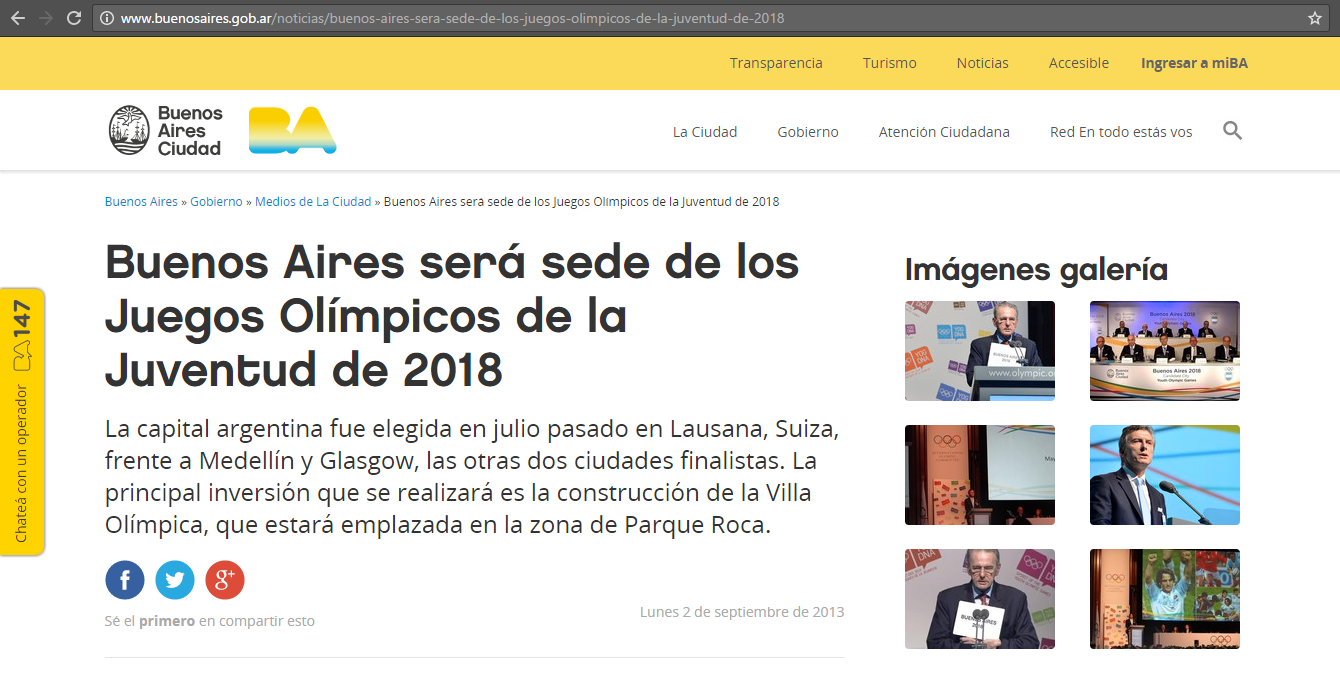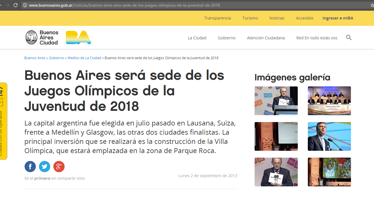 Buenos Aires se convirtió en Sede de los Juegos Olimpicos Juveniles 2018.