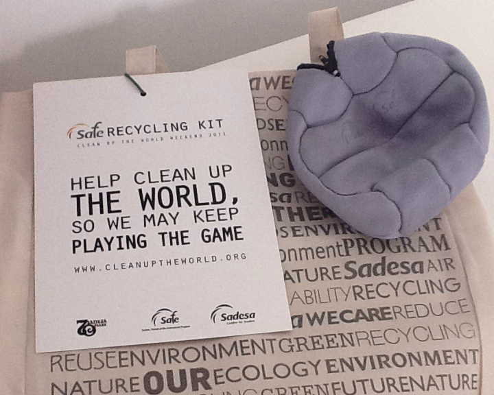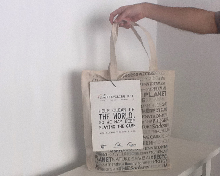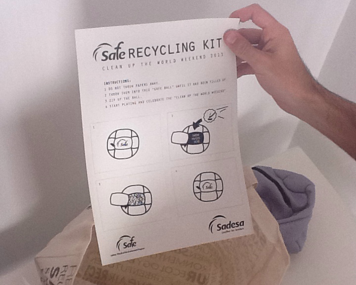 El tercer fin de semana del mes de septiembre, en el cual se festeja el “Clean up the world weekend”, le enviamos a los gerentes de marketing y comerciales de Adidas (Argentina – China), Nike (USA – Taiwan) y Reebok (China) la Safe Office Ball; un cesto de basura con forma de pelota, hecho íntegramente con cuero safe. La pelota se va rellenando con papeles que se desechan a diario en el trabajo. Una vez que se completa, se cierra y queda lista para jugar con los compañeros en la oficina.